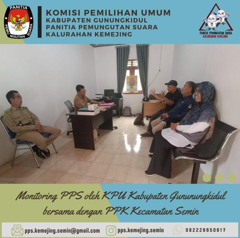 Selasa, 31 Januari 2023, KPU Kabupaten Gunungkidul melakukan monitoring kerja ke Sekretariat PPS Kemejing. Dalam pertemuan ini KPU menanyakan tentang progres kegiatan pembentukan Sekretariat dan rekrutmen Pantarlih.